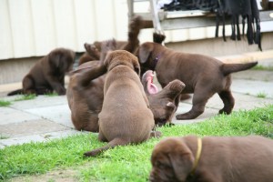 Wat härligt dom små sötingar är, vi sitter nu ute och busar med varan och den stora hundarna, våran två gamtanter tycker inte att det är så himla roligt. Dom små tycker det är roligt endå dom springar lekar och biter i varan och i mamma och badar lite! Då och då spelar vi lite ljudskivan så att dom kan välja lite på olika ljud, dom brur sig inte så mycket mer! När dom stora reagear på något och börja skälla då kan dom reagera lite att dom samla ihopp sig lite men inte och tittar lite vad gör dom!!